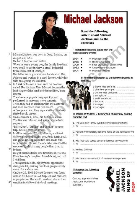 Michael Jackson ESL worksheet by yonofui84 from www.eslprintables.com